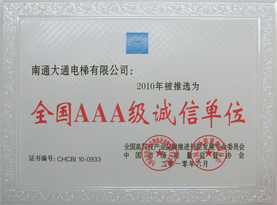 全國(guó)AAA級(jí)誠(chéng)信單位